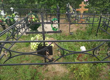 Далее мы перекрасили ограждение, установили подставку, сам памятник, прямоугольный цветник. Работу заканчивали в дождь, поэтому фотографий сухого место захоронения нет. На последнем снимке чётко видно, что даже на мокром памятнике выгравированная надпись очень легко читается.