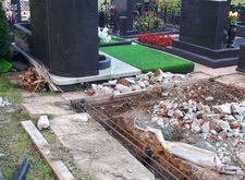 Сначала мы разобрали всё, что было на могиле: демонтировали памятник, сняли гранитный цоколь, разломали бетон.